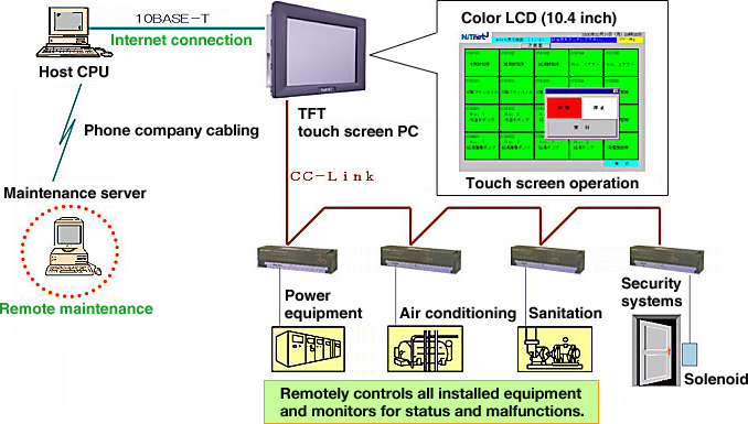การบำรุงรักษาจากระยะไกลสามารถทำได้ผ่าน LAN (Local Area Network) และการเชื่อมต่อสายโทรศัพท์ ทำให้สามารถทำงานได้อัตโนมัติ สามารถตรวจสอบสถานะและตรวจสอบสัญญาณเตือนของสิ่งอำนวยความสะดวก ตลอดจนอุปกรณ์ในห้องเครื่องจักรและห้องไฟฟ้าได้