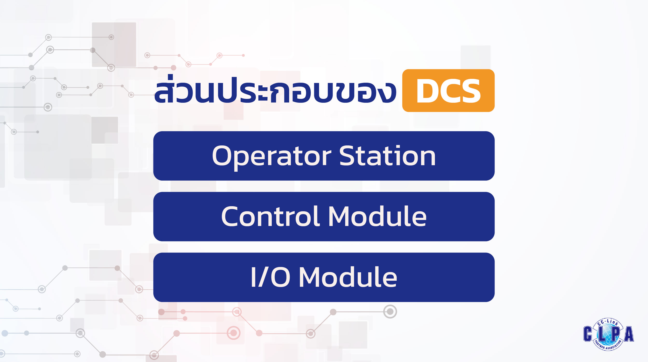 หน้าที่สำคัญของระบบ DCS คือ ระบบที่ทำหน้าที่ควบคุมการทำงานแบบวนลูป โดยลูปหนึ่งสามารถดำเนินการควบคุมหลายได้ขั้นตอน ซึ่งพื้นฐานระบบ DCS มีส่วนประกอบ 3 อย่างด้วยกัน ได้แก่ Operator Station Control Module และ I/O Module โดยมีรายละเอียด ดังนี้