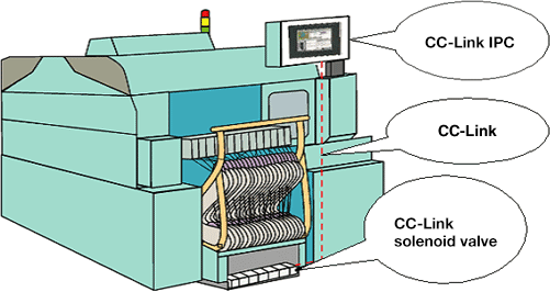 - การนำเครือข่าย CC-Link มาใช้งานทำให้ลดการใช้สายเชื่อมต่อลง และทำให้เกิดเครื่องมีขนาดกระทัดรัดมากขึ้น