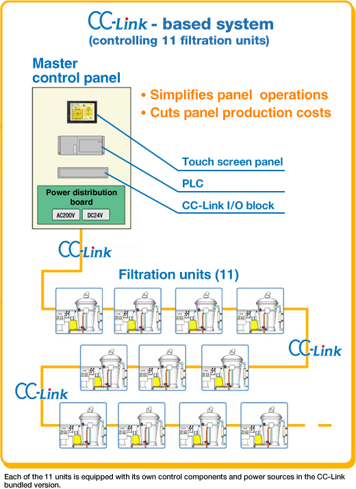 การใช้งานเครือข่าย CC-Link ช่วยให้สามารถย่อขนาดแผงควบคุมระบบกรองได้