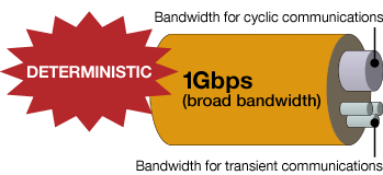 แบนด์วิธถูกแบ่งออกไปเป็นการสื่อสารแบบซิงโครนัสวนรอบตามที่กำหนด (Cyclic Communications) ซึ่งประกอบด้วย การรับเข้า/ส่งออก ระบบความปลอดภัย การเคลื่อนไหว และการควบคุมพลังงาน และ การสื่อสารข้อความตามสั่ง (Transient Communications) ซึ่งประกอบด้วย การแจ้งเตือน ระบบค้นหาข้อบกพร่อง ฯลฯ ซึ่งทั้งสองส่วนนี้จะไม่ส่งผลกระทบต่อประสิทธิภาพการทำงานของระบบ