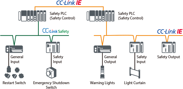 ด้วยการติดตั้ง Safety PLCs ในแต่ละกระบวนการบนสายการผลิตและเชื่อมต่อกับเครือข่าย CC-Link IE Field (โดยใช้ฟังก์ชั่นความปลอดภัยในการสื่อสาร) ควรมีการ Safe Shutdown เกิดขึ้นในกระบวนการหนึ่ง และการเชื่อมต่อที่มีอยู่จะช่วยรับรองว่าระบบจะ Safe Shutdowns กระบวนการใกล้เคียงต่อไปด้วย