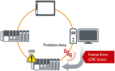 เราได้ใส่ Error Code แจ้งเตือนเอาไว้ใน Frame และในส่วนข้อมูลมูลที่ถูกส่งออกไปในรูปแบบ Transmission Frame และนั่นก็จะทำให้การตรวจจับพื้นที่ที่มีปัญหาง่ายขึ้น ในกรณีที่ Frame Data เกิดความผิดพลาด โดยมีสาเหตุจากความผิดปกติของสายเคเบิ้ล